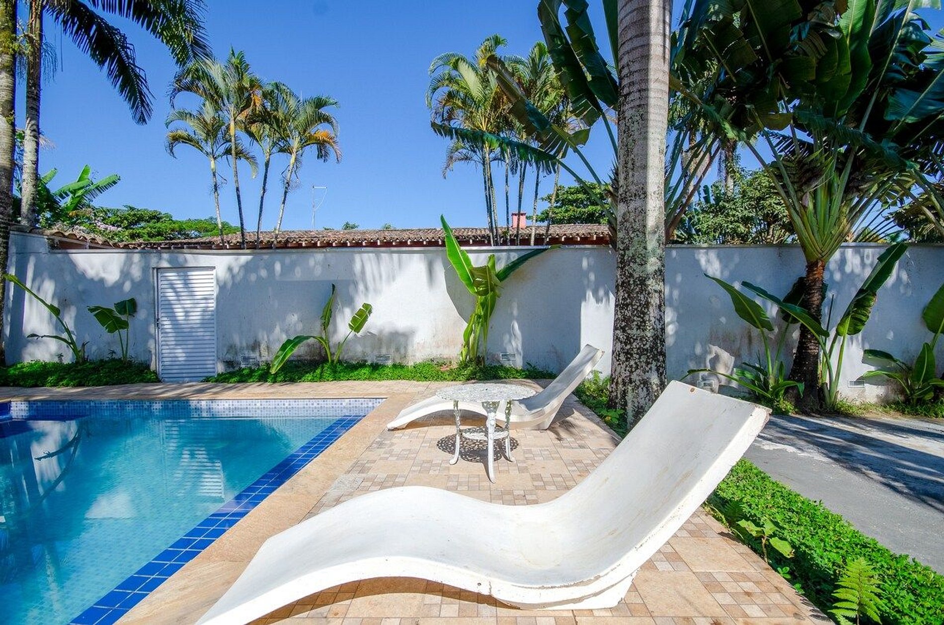 Casa totalmente térrea com acomodação para 16 pessoas EM CAMAS, distribuídas em 4 dormitórios sendo 1 suíte, 2 banheiros, sala de estar, cozinha tipo americana, espaço gourmet, bar para piscina, vestiário, garagem para 6 carros, paisagismo, piscina, churrasqueira. Casa foi recém reformada, colchões novos, todos utensílios de cozinha, tudo pensado para uma estadia muito confortável. O projeto de paisagismo e iluminação se torna um diferencial. Estamos localizados em frente ao GOLF CLUB DO GUARUJA, a menos de 350m da praia, cerca de 5min caminhando, a 300m de todo tipo de comércios (bares, restaurantes, casas noturnas, supermercados, farmácias e padarias).