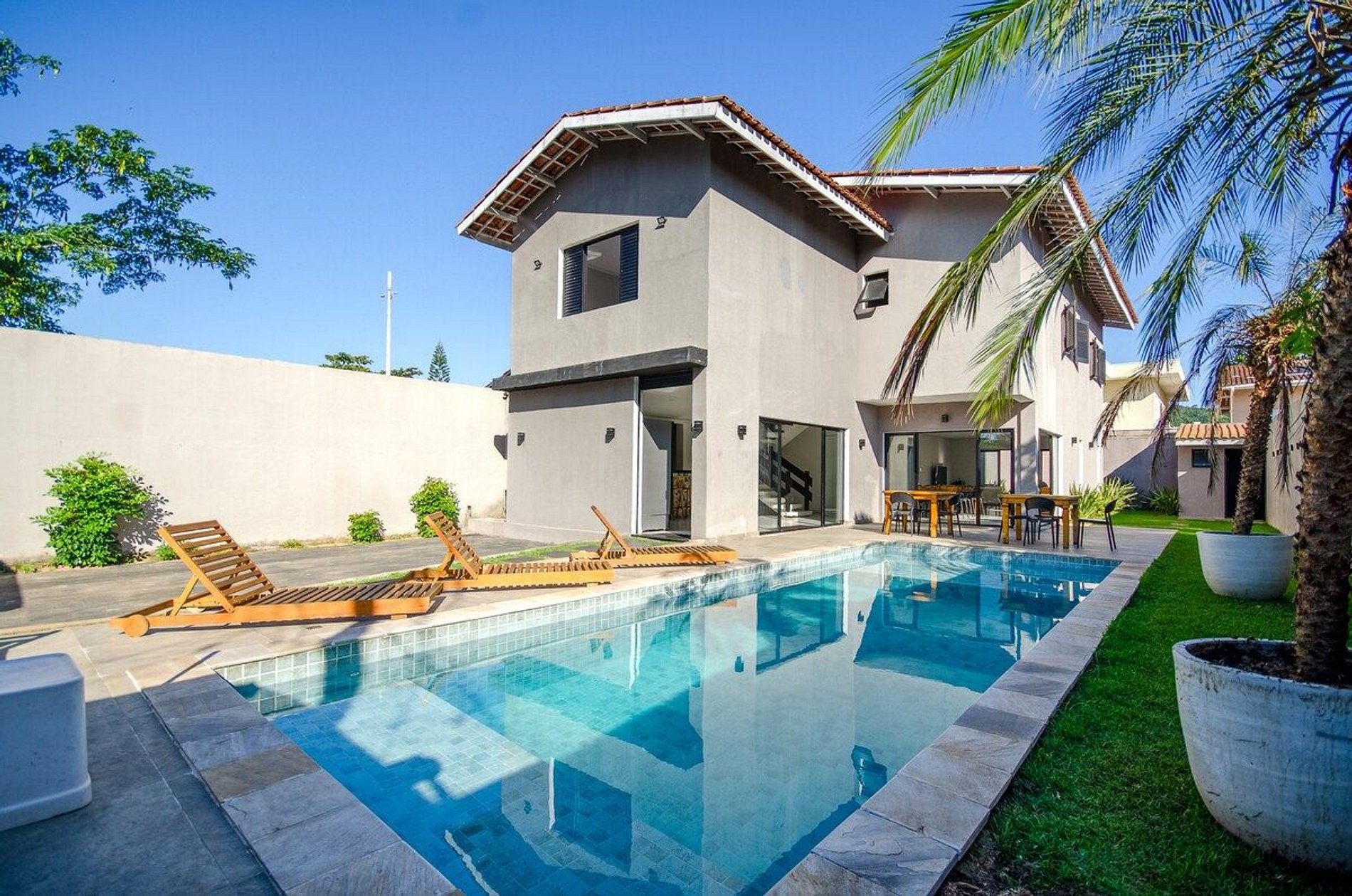 Casa muito bem cuidada. Área da piscina é maravilhosa e integrada a cozinha e salas! Temos ventiladores de teto em todos os quartos! Apenas não fornecemos roupas de cama, travesseiros e toalhas!