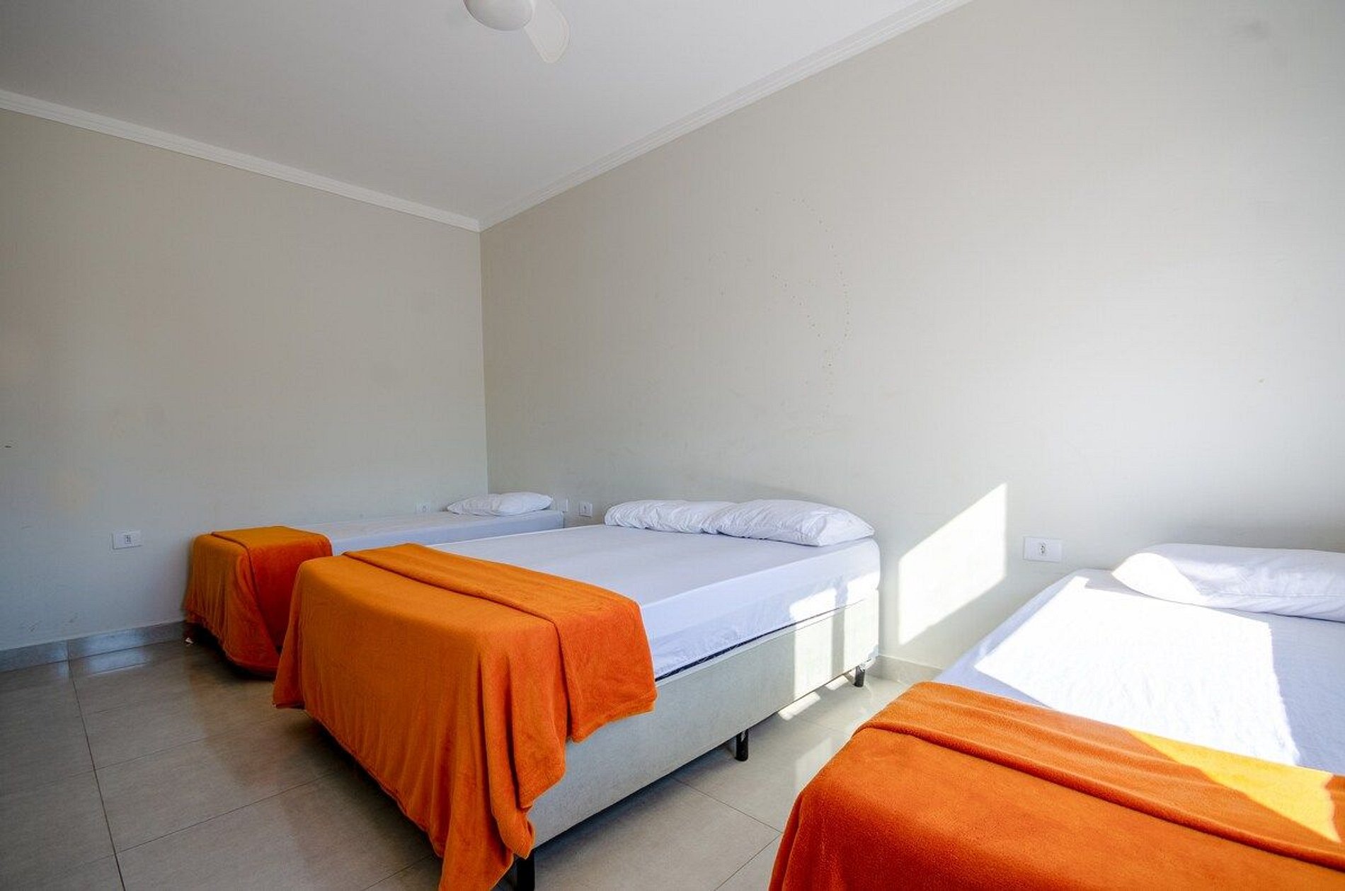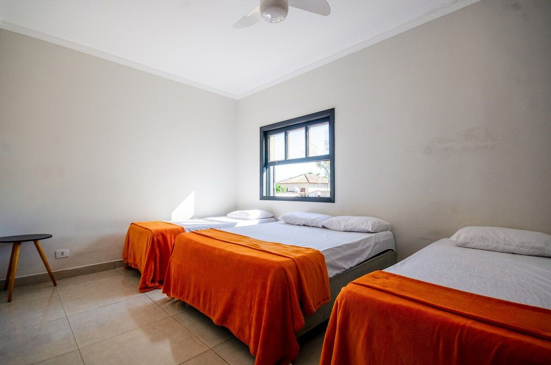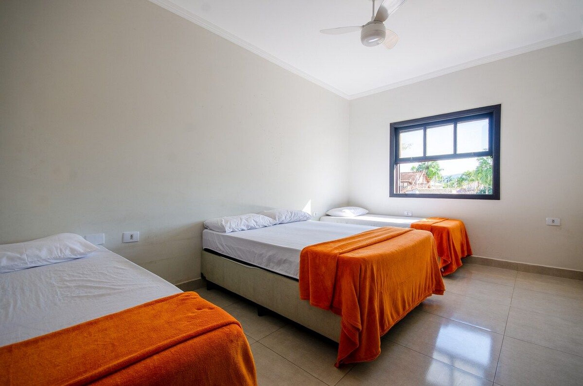 Não possuímos ar condicionado, mas temos ventilador de teto em todos os quartos!